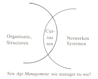 de leiding van de organisatie, de newage-manager, leidt daarmee een proces van permanente transformatie, als een vorm van gerichte energie;